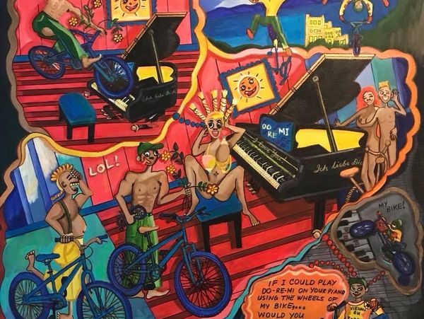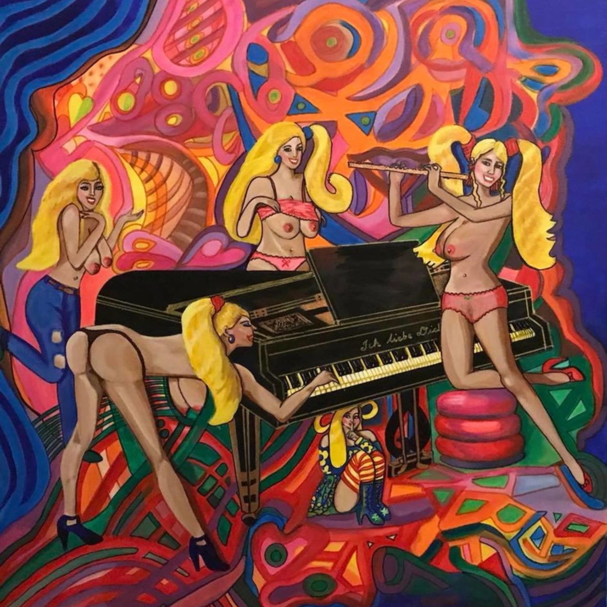150x100cm big with miniature faces. The story: “In 1973, as Picasso got swallowed whole, the cyclone formed in Bermuda Triangle, where the Chasers Yacht Club was last seen partying. In the underwater room, Pregnant Miss X chased her man, who fell in love with a mermaid. As the girls kicked-ass, under the sun a smiling shark. Nobody knows what happened next!”