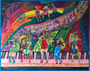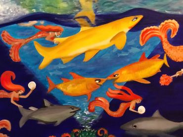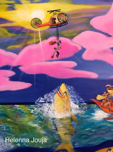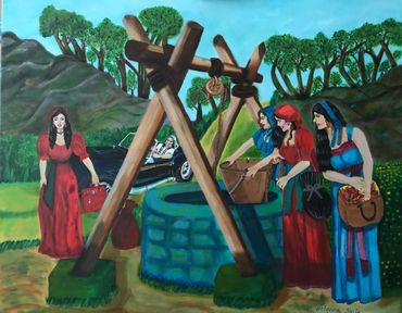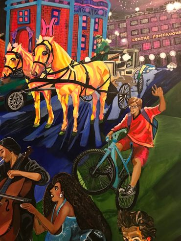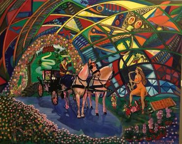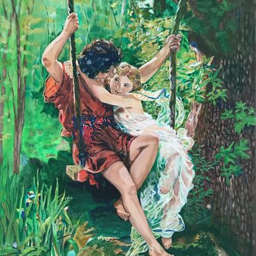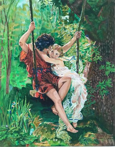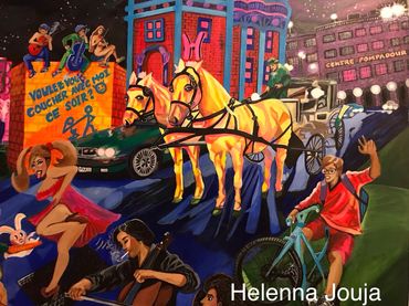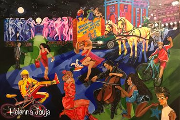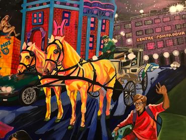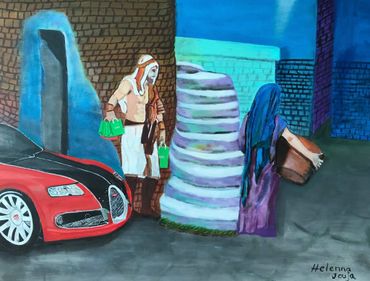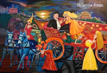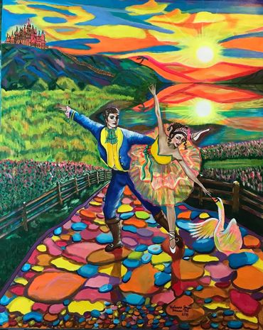 Once upon a time as the sun rose so bright, the Swan near the Swan Mountain met the Prince and the Fairy Princess. The Swan wished to be a beautiful princess as beautiful as Princess Karla. The Fairy Princess touched the swan and granted her wish. “ the Swan on the Street,” 100x80 cm canvas