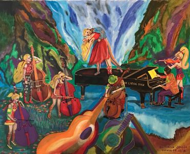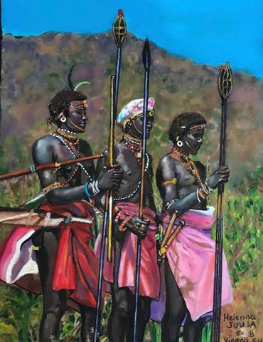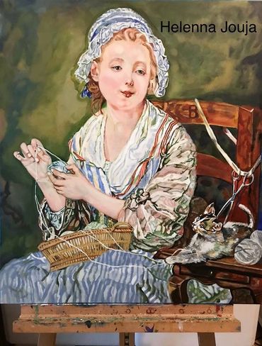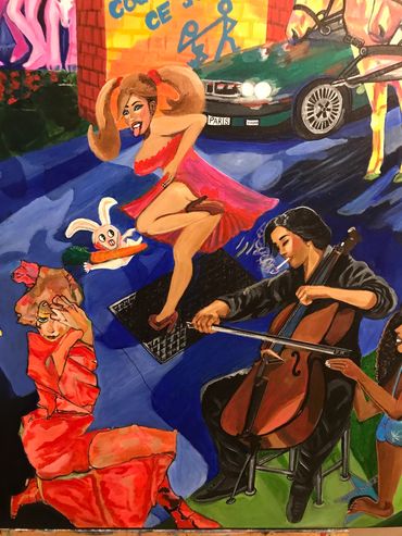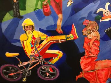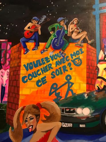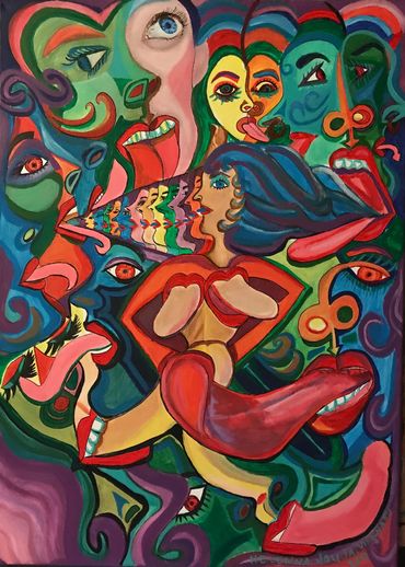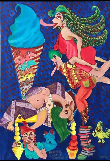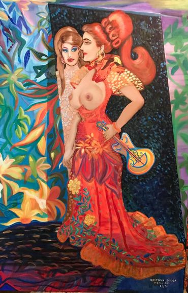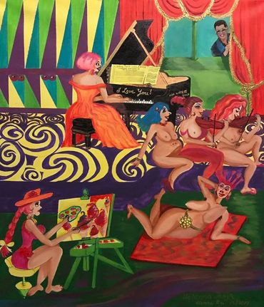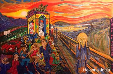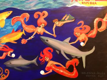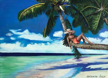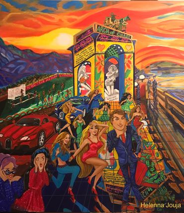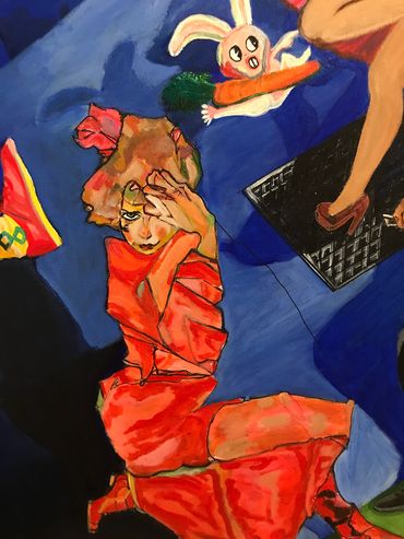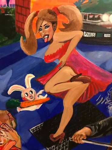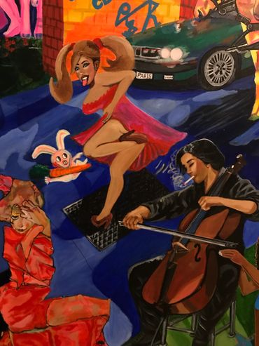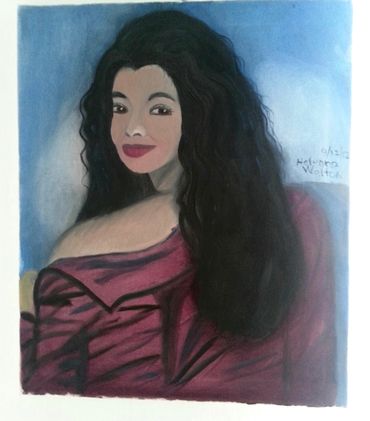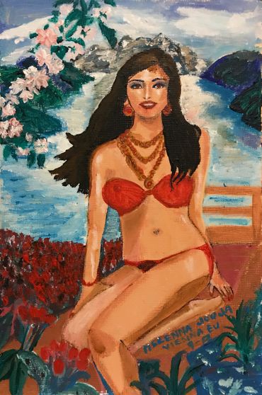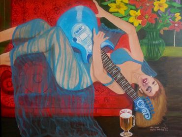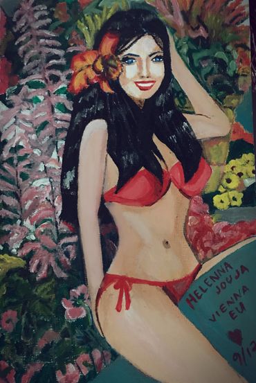 After my first 3 attempts to paint using acrylic on cardboard, i tried painting on huge canvas. Since I was a beginner, and had avoided drawings for years, I had no idea if I could make it. I ended up painting all the expensive things in the world, Well, the cellphone she‘s holding on her left hand used to be the most expensive cellphone at that time, haha. I had painted here the most expensive bag, pen, crown, accessories, private jet, Bugatti and even the most expensive book written by Leonardo da Vinci that was bought for US30M dollars by Bill Gates at the auction. Then I realized something was missing she also needs to eat. Unfortunately, I only had one banana left at home. So that banana was my first life painting, lol :D I designed her night gown with fur, and I wanted it to be silk and see-thru. No idea how to make it see-thru, but I solved it on my own, without reference to any painting tricks. Her face is just an imaginary face. I imagined how the most beautiful face should look like and that’s her face for me :D I was thinking that painting serious figure is just common sense. Nowadays, no one should even bother to go to school to learn how to paint. Our time is „just do it!“ For short, i did it all and I identified this painting as „The Material Girl,“ my first acrylic painting on canvas.